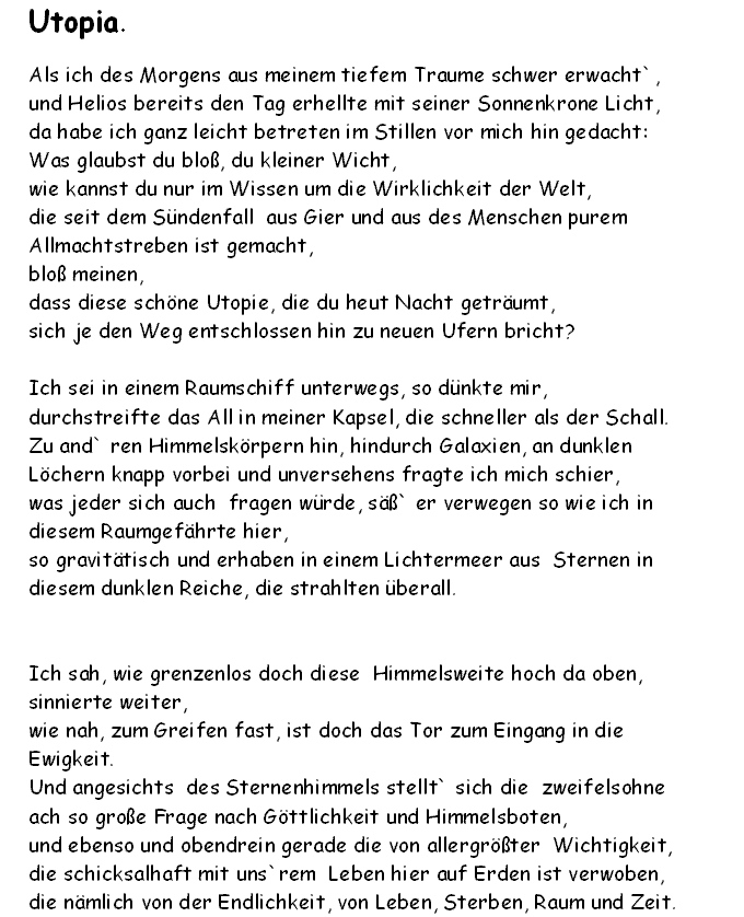 UTOPIA - das ist nach WIKIPEDIA der wünschenswerte Zustand der Welt, bzw. eines Staates.